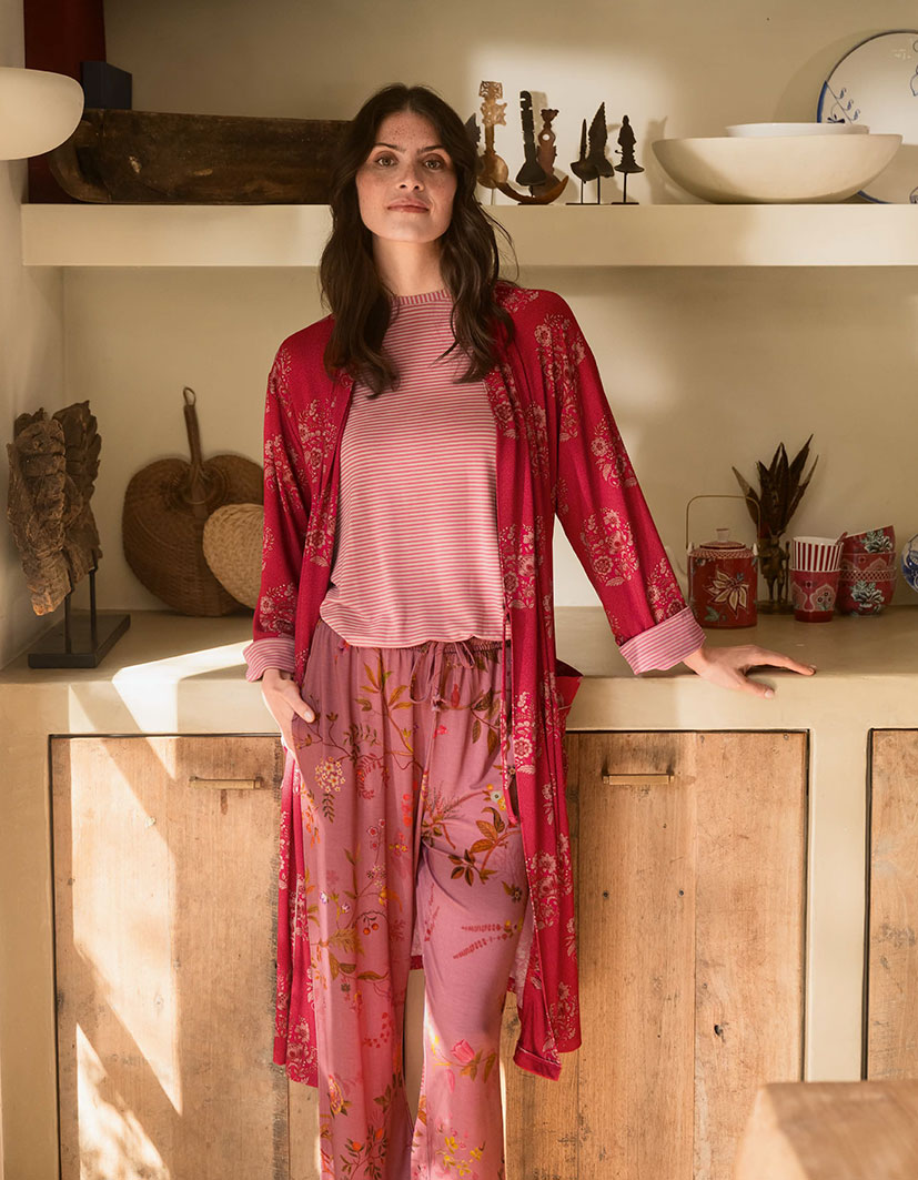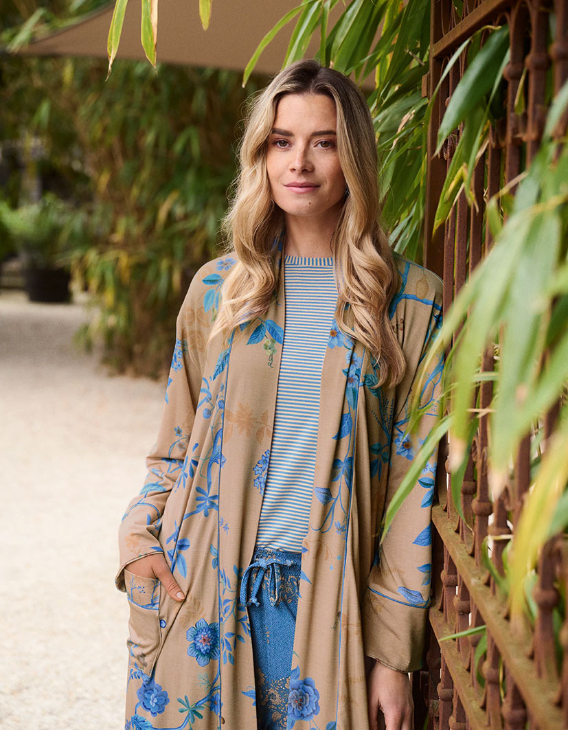 Loungewear-serien från Pip Studio ger komfort och elegans i mjuka tyger med ikoniska mönster. Plagg som pyjamas, morgonrockar och lounge-byxor är dekorerade med Pip-stilens typiska blommotiv eller romantiska fågelmotiv, vilket gör att avkoppling och stil går hand i hand.
